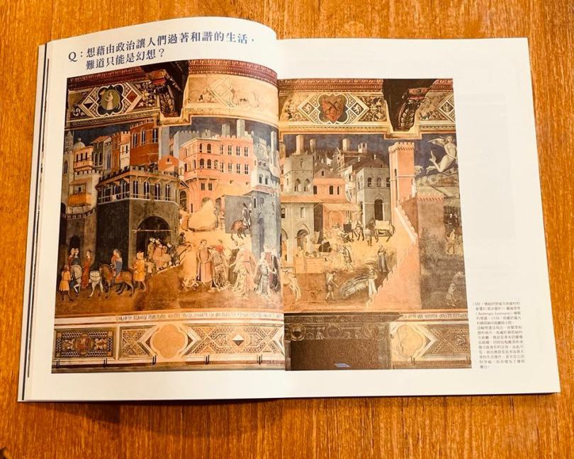 這是《好/壞政府對城市與鄉村的影響》(部分畫作),由義大利畫家羅倫澤蒂(Ambrogio Lorenzetti)於1338年所繪,收藏於錫耶納市政廳。用意之一是勉勵擔任市政責任的官員。同時揭示了政治的意義: